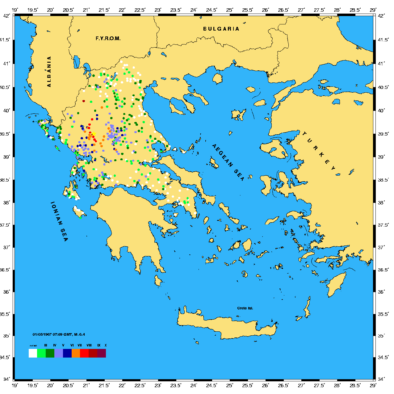 | 1 Μαΐου 1967 | 07:09 | 39.5 | 21.2 | 34 | 6.4 | IX στη Δροσοπηγή Ιωαννίνων | * | ||