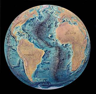 Text Box: Τα όρια απόκλισης λιθοσφαιρικών πλακών είναι γνωστά και ως μεσοωκεάνιες ράχες. Οι πλάκες που απομακρύνονται αργά μεταξύ τους, με αντίθετες κατευθύνσεις, επιτρέπουν στο μάγμα να εξέρχεται και να στερεοποιείται με τρόπο που να αυξάνεται ο ωκεάνιος φλοιός. Η πλέον γνωστή περίπτωση μεσοωκεάνιας ράχης είναι αυτής του Ατλαντικού ωκεανού που διακρίνεται στην εικόνα.